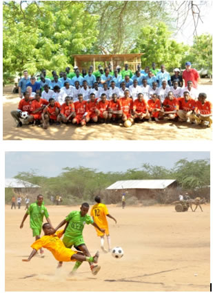 advertisementsThe Somalia Unit of the United States embassy in Nairobi presented uniforms and sports balls to several youth football and volleyball teams in the Dadaab refugee camps on November 16, 2009.