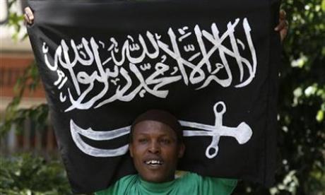 A protestor holds the flag of Somali rebel group al Shabaab during a demonstration outside the Jamia Mosque in Kenya's capital Nairobi, Jauary 15, 2010 Credit: Reuters/Thoms Mukoya