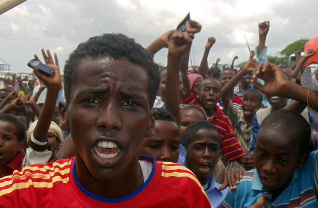 Though the Shabab are losing ground, as well as domestic support, as the battles continue, Thursday’s rally — just next door to the war zone of Deynile — offered a flash of resolve.