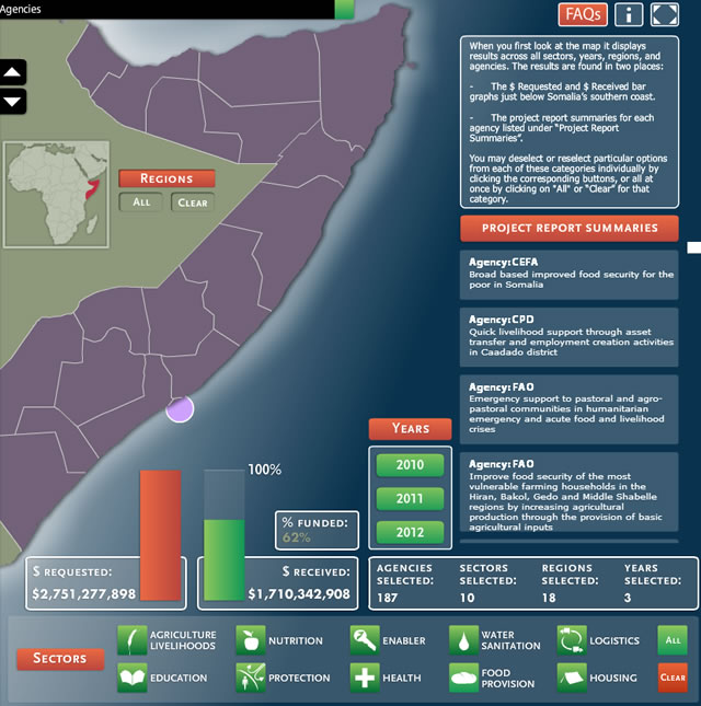 Here is a screen cap of their mapping tool. You can browse by region, agency, and sector. It is very much worth a click-through.