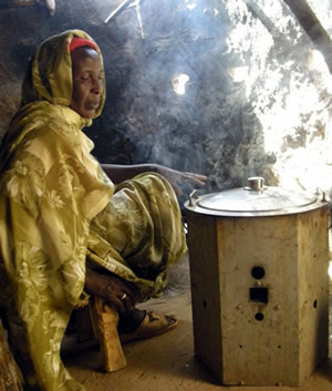 ![]() Woman in a refugee camp in eastern Chad, with an energy-efficient cooker. The daily needs of the local population and a quarter-million refugees are squeezing already scarce resources like wood and water - © Celeste Hicks/IRIN |
