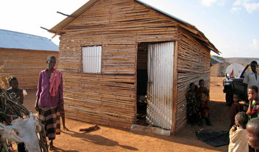 The shelter type NRC is building in Dolo Ado is made from locally produced materials, benefitting the local and national economy. The walls are made from bamboo, one of Ethiopia´s main export products, which can be sourced not far from the camps. Bamboo grows quickly, making it a more environmental friendly material for construction than trees. The corrugated iron sheets used to make roofs, windows and doors are also produced in Ethiopia. Windows and doors are lockable and therefore provide beneficiaries with increased protection. So far in 2012, NRC, together with the refugees and host community, has constructed 3,015 of these shelters in Dolo Ado, benefitting more than 15,000 people.