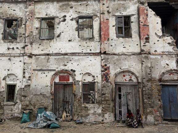 This building, like many others in Mogadishu, has been gutted by the years of street fighting. Rebuilding will be a massive undertaking, but companies are returning.