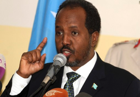 Somalia's President Hassan Sheikh Mohamud addresses members of the parliament in Mogadishu October 17, 2012. REUTERS/Ismail Taxta