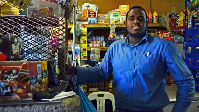 Abdullahi Wehliye’s shop in Philippi township in Cape Town has been robbed seven times since 2010. During one occasion in 2012, his brother was shot and killed © Kristy Siegfried/IRIN