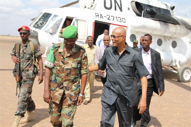 Prime Minister Abdiweli Sheikh Ahmed was accompanied by key cabinet members including internal security minister Abdi Karim Hussein Guled, Djibouti’s abmassador to Somalia Dayib Dubad Rooble and top Somali National Amry officials.