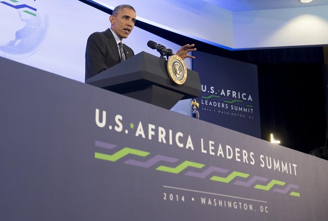 US President Barack Obama speaks during a press conference at the conclusion of the US - Africa Leaders Summit at the US State Department in Washington, August 6, 2014