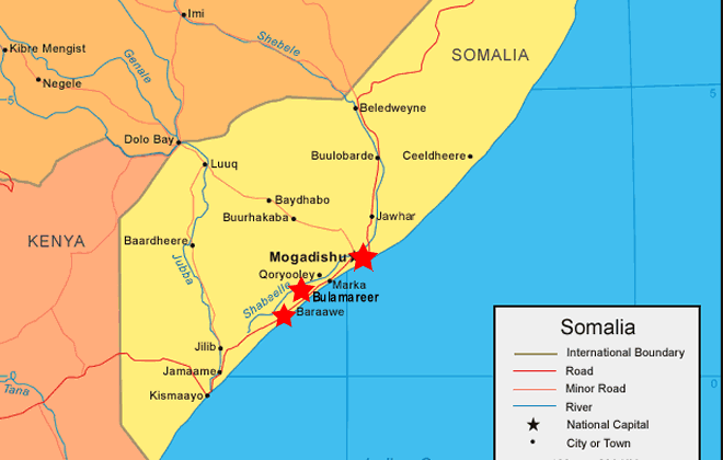Bulamareer lies about 80 km (50 miles) north of Barawe port, a major al Shabaab stronghold.