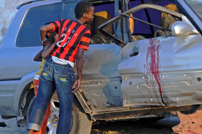 Children examine the remains of a vehicle which blew up in Mogadishu November 27th, killing an engineer. Somali media organisations have pledged to work together to safeguard youth from the violent ideology that spurs this type of crime. [Mohamed Abdiwahab/AFP]