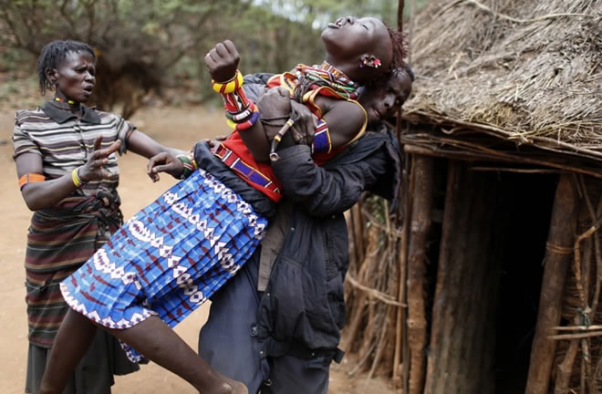 Within the Pokot tribe, female circumcision is seen as a girl’s transition to womanhood. Although it’s now illegal in Kenya, the tribe still allows it and, in fact, forces all girls to do it before marriage. The practice is also known as female genital mutilation (FGM) and, in many countries, is considered a human rights violation. It can lead to severe bleeding, infections, infertility and death. Some 125 million girls and women in 29 countries in Africa and the Middle East have experienced it, according to the United Nations.