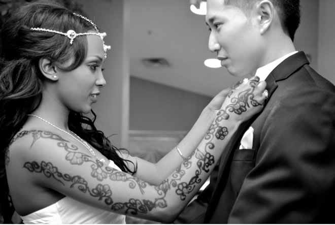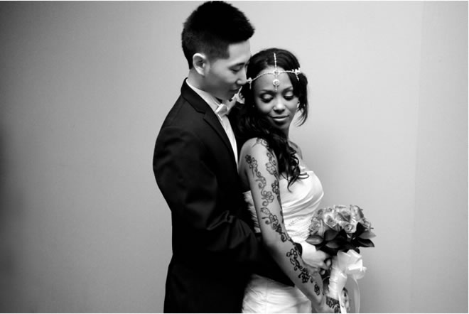 Farhia and Jason were astounded that their beautiful wedding photographs went viral on the Internet.  The pics of this chic and hip urban couple are on many many Blasian and interracial couples Tumblr site as well as bridal and wedding websites.   I even covered them here on BBW.  Amal and Nada, the fab female photographers who make up Black Earth Studios deserve an award for The Koyama Wedding Shoot.  These photogragphs are absolutely beautiful.   I did not want to just piece together facts and display photos,  I wanted an interview.  So now I am sharing a little of Farhia and Jason’s story with you.  Farhia is very open minded and had no inhibitions dating or marrying interracially in the least bit.