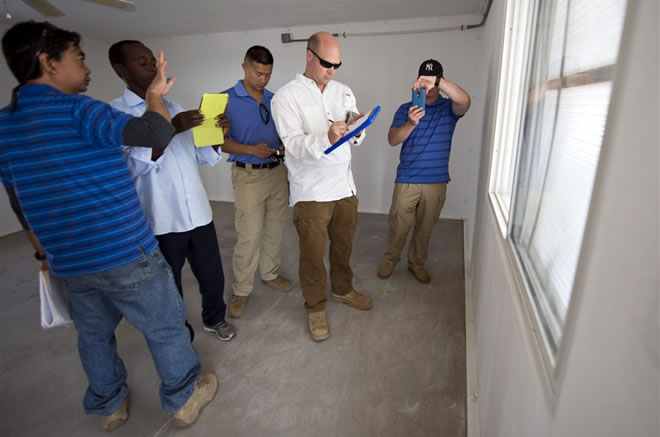 Twenty Seabees from NMCB 133 and 14 Seabees from NMCB 74 worked on the facility from February to December 2014. Throughout the construction process, Tadjourah Trades School students from the Centre d’Apprentissage Cardjin observed the Seabees during concrete placement, residential electrical wiring, carpentry and welding.