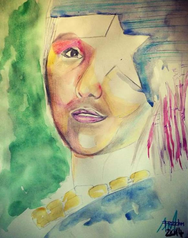 Sado Ali portrait painted by Ahmed Magare upon hearing the news of her death.