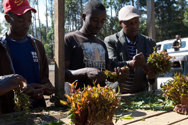 Late last year, I traveled as part of a VICE crew to the heart of khat country; the county of Meru in the middle of Kenya. One of the richest (and happiest, it seemed) parts of the country, Meru relies heavily upon the khat trade. Bucolic and orderly, khat farms—peaceful most of the time—turned into hives of activity for a couple of hours each day, as the khat, which loses its narcotic effects about 72 hours after picking, was bundled into high-speed pickup trucks and driven to the capital Nairobi. Watch the film, it’s good.