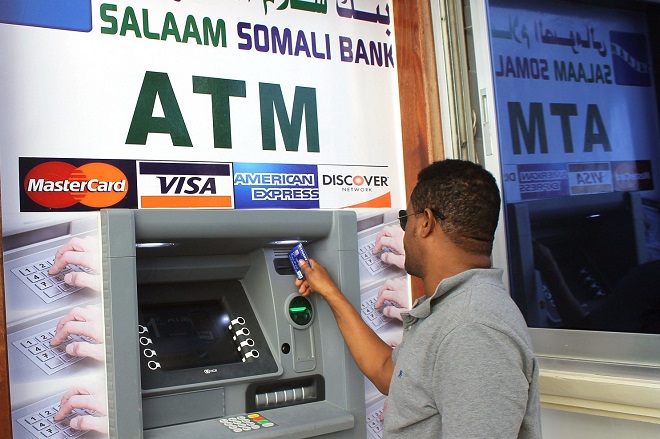 A Somali man uses the first-ever ATM cash withdrawal machine installed in the Somalian capital Mogadishu, on Oct. 7, 2014. The machine, installed by the Salaam Somali Bank in an upmarket hotel, allows customers to withdraw U.S. dollars.