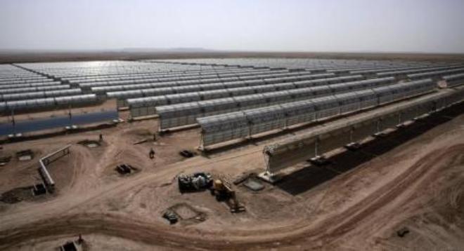 Workers build a thermo-solar power plant in Beni Mathar August 20, in a file photo.