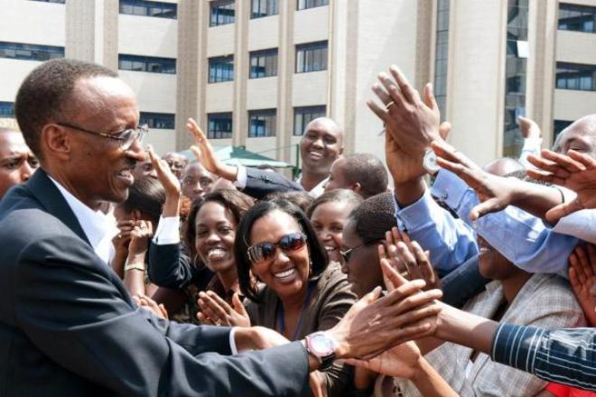 Rwanda's President Paul Kagame greets supporters after presenting candidature documents to an electoral commission in the capital Kigali June 24, 2010. Photo/REUTERS