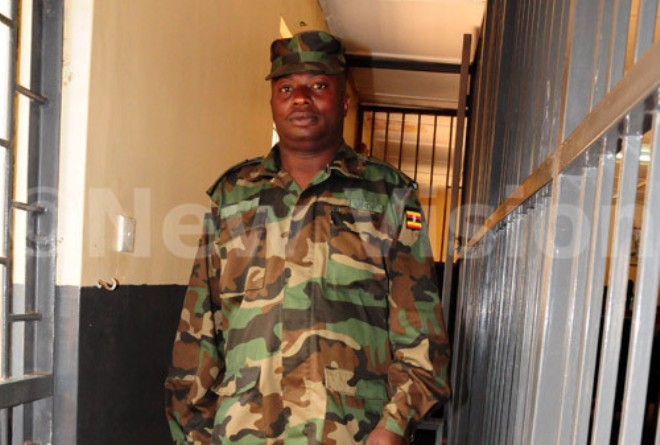 Lt.Col. Samson Nabeeta walking out of the dock at the Court Martial, Makindye after being given bail on Sept 29, 2015. Photo by PETER BUSOMOKE