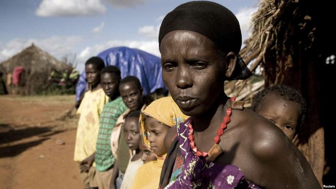 FILE - A women and her children stand next to their house on the outskirts of Moyale, Ethiopia, a nation where not many books are written in local languages, and few Ethiopians read for pleasure.