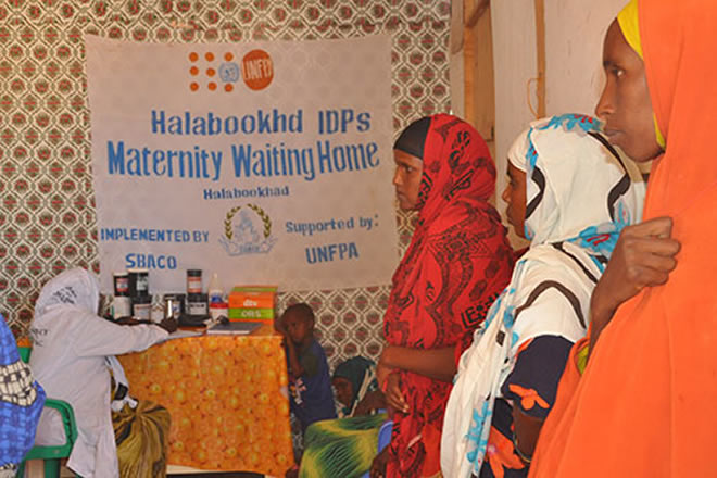 Women obtain health services at a maternity waiting home in a Mogadishu displacement camp. © UNFPA Somalia/Ruth Solomon