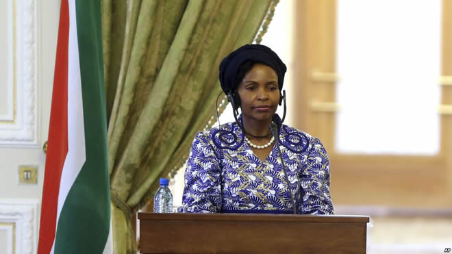 FILE - South African Minister of International Relations and Cooperation Maite Nkoana Mashabane, May 11, 2015.