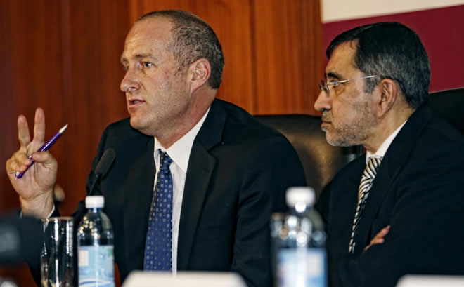 Prof Van der Merwe (L) and Prof Rafique Moosa at a press conference in March where they announced the successful penis transplant. Photograph: AFP/Getty Images