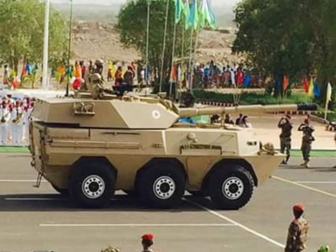 Only one WMA301 Assaulter was displayed during the parade, making it unclear exactly how many have been delivered to the East African country. The vehicle uses a 6x6 WZ551 armoured personnel carrier hull fitted with a 105 mm gun in a three-man turret, as well as a 12.7 mm roof-mounted machinegun and 7.62 mm coaxial gun. The vehicle weights around 19 tons. The type is in service with Cameroon and Chad, which, according to IHS Jane’s, have deployed them in action against Boko Haram militants.
