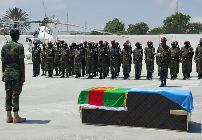 “He was a hero who spent most of his time fighting Al-Shabab to liberate his country.” The devastated Gen. Dini said at the burial ritual.