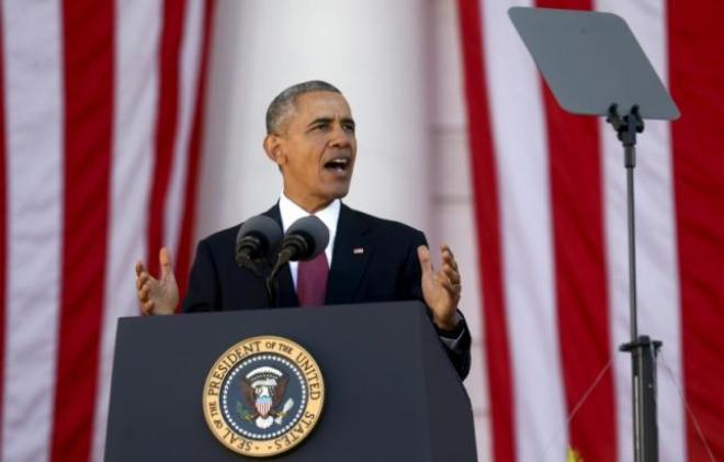 U.S. President Barack Obama speaks during a Veterans Day ceremony at Arlington National Cemetery in Virginia, November 11, 2015.