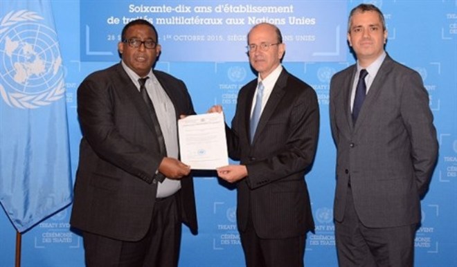 Somalia is the 97th State Party to the Convention on Cluster Munitions. An instrument of ratification was deposited with the Secretary-General of the United Nations at the UN headquarters in New York on 30 September 2015. Congratulations!“After almost six years of hard work and encouragements, I am very happy to see that my government has ultimately ratified the Convention. This will pave the way to fully implement the Convention’s provisions and to clear all cluster bomb remnants in my country, mainly in border areas between Somalia and Ethiopia,” said Dahir Abdirahman of the Somalia Coalition to Ban Landmines.