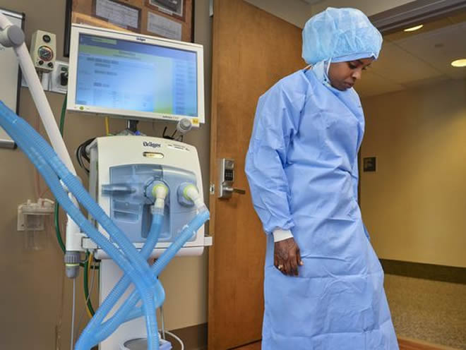 Omar worked with Peggy Lange, director of respiratory care at St. Cloud Hospital, to find a solution. After looking at what other hospitals do and browsing medical clothing suppliers, they settled on a longer surgical gown worn over scrub pants with a head covering.