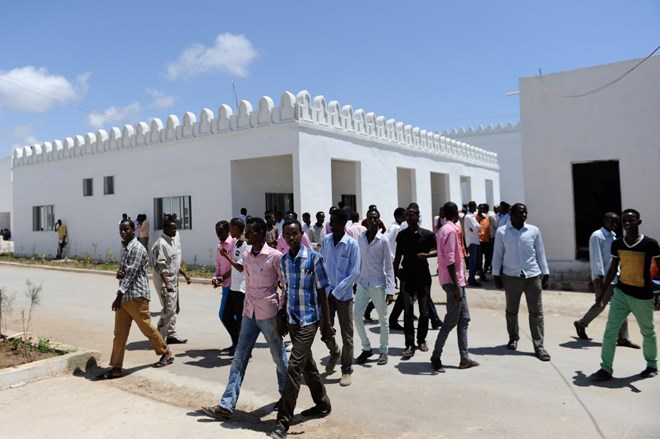 University students going for a break at the Somali National University in the capital Mogadishu on October 23rd, 2014. Classes were held in September for the first time in 23 years after shutting down during the country's civil conflicts. Dramatic improvements in security in the city enabled the Federal Government to renovated the campus which now has 374 students and six different faculties. AU/UN IST Photo / Ilyas A. Abukar