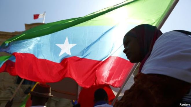 FILE - Members of the Oromo community of Ethiopia, living in Malta, protest against the Ethiopian regime and its plan to displace Oromo farmers outside the office of Malta's Prime Minister in Valletta, June 16, 2014.