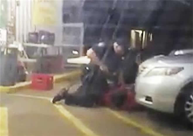 In the cellphone video taken by a community activist and posted online, one of the officers tackled Sterling, and the two officers pinned him to the pavement.