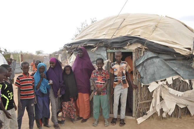 Amina Mohammed stands with some of her children at Dadaab. She arrived there in 1991 with her husband from Somalia when the civil war that ousted Somali President Siad Barre broke out. Tonny Onyulo for the Boston Globe