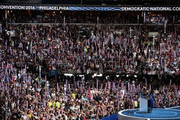 As shock polls showed Republican Donald Trump leading the race for the White House, Democrats gathering to make Clinton the first woman presidential nominee from a major party were in disarray.