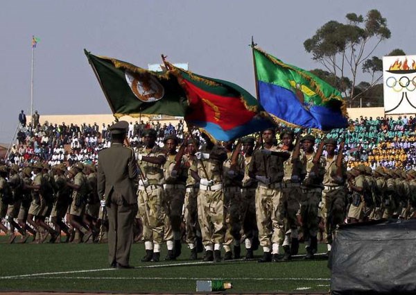 Eritrean soldiers parade during the young country's 16th Independence day celebrations in Asmara on May 24, 2007. Eritrea has said it killed more than 200 Ethiopians in a battle last week, one of the fiercest border clashes since a 1998-2000 war PHOTO | AFP