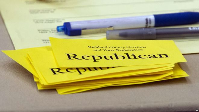 A stack cards used to help sort voters sits ready during voting in the South Carolina Republican Presidential Primary Saturday, Feb. 20, 2016, in Columbia, S.C.