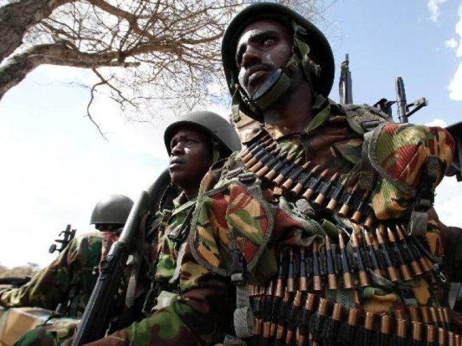 KDF soldiers patrol Tabda village, 80km from the Kenya- Somalia border on February 20, 2012. Forty al Shabaab fighters and two Kenya Defence Forces soldiers were killed at the weekend in two separate incidents of fighting between Amisom troops and militants in Somalia /REUTERS