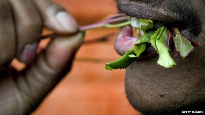 Ranked on par with heroin and cocaine by U.S. lawmakers, khat leaves are chewed by students and mixed for tea by men in Somalian cafes, said Ringel.