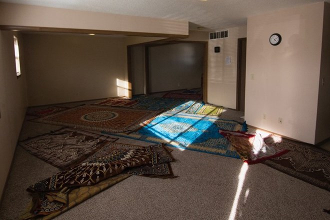 The interior of a makeshift mosque in Garden City, Kan., that three white members of a militia are accused of planning to bomb. Credit Adam Shrimplin/Reuters
