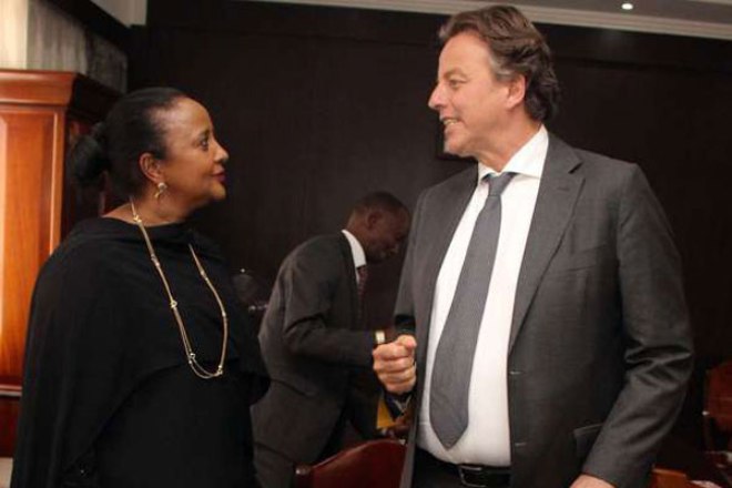 Foreign Affairs Cabinet Secretary Amina Mohamed speaks with her Netherlands counterpart Bert Koenders before a joint press briefing on April 13, 2017 at the ministry of Foreign Affairs. She is in the US to negotiate an arms deal. PHOTO | DENNIS ONSONGO | NATION MEDIA GROUP