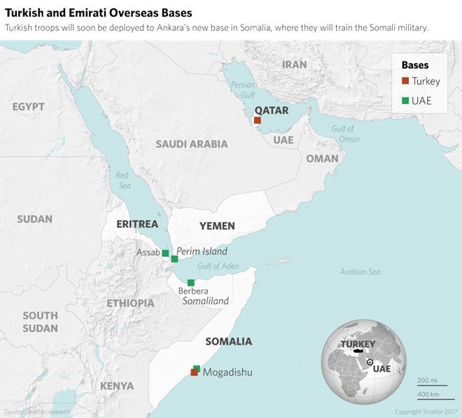 Of course, the competition between Turkey and the United Arab Emirates isn't limited to Somalia. The deployment of about 250 Turkish troops and 30 armored vehicles and artillery pieces to Qatar plays into the regional crisis involving the Gulf Cooperation Council (GCC). Turkey, which competes for a dominant position in the region with these Gulf states, has supported Qatar not only with its military deployment, but also through economic support during the trade embargo implemented by some GCC members. The Turkish deployment in Qatar is still in an early stage, but some Turkish officials have suggested it could reach up to 3,000 troops and include fighter aircraft and naval vessels. If it does, Turkey would have a noteworthy combat capability in the Persian Gulf.
