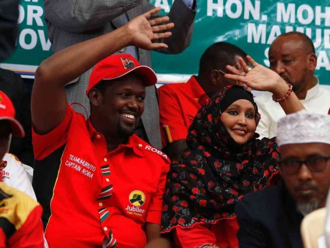 Mandera Governor Ali Roba and his wife Hodhan Ibrahim during a meeting at Nyayo National Stadium on July 2 / JACK OWUOR
