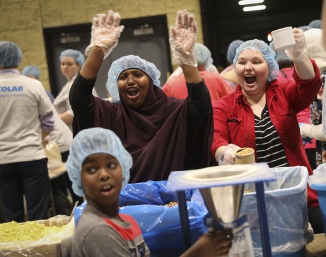 More than 19,000 volunteers packed meals to help Somalis facing severe drought and famine.