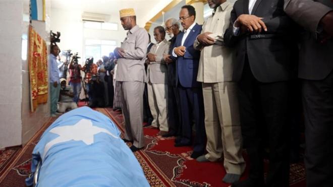Mohamed on Thursday cut short his trip to Ethiopia and prayed at the coffin of Abbas Abdullahi Siraji, the 31-year-old minister of public works and reconstruction, who was shot dead on Wednesday outside the presidential palace in the capital, Mogadishu.