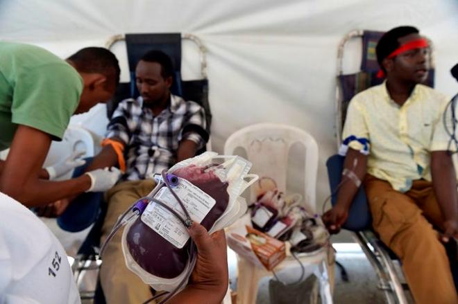 A day earlier, Mohamed had organized a blood drive in the neighborhood. With the assistance of the Somali Embassy, 310 pints (175 liters) of blood were sent to Mogadishu by plane.