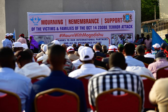 Guests attend a ceremony to remember the victims and families of the October 14 attack in Mogadishu. Credit: AMISOM/Ilyas Ahmed