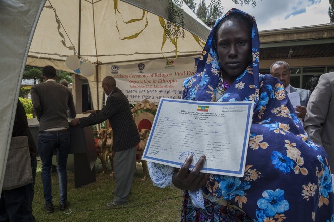 At the launch today, 11 refugees were issued with certificates in the capital of Addis Ababa. Civil registration offices have also been established in each of the 26 refugee camps, as well as in the seven locations with a high concentration of refugees.More than 70,000 refugee children born in Ethiopia over the last decade have not had their births registered and will soon be issued with birth certificates. Children born before the new law came into force can also now obtain a birth certificate retroactively.