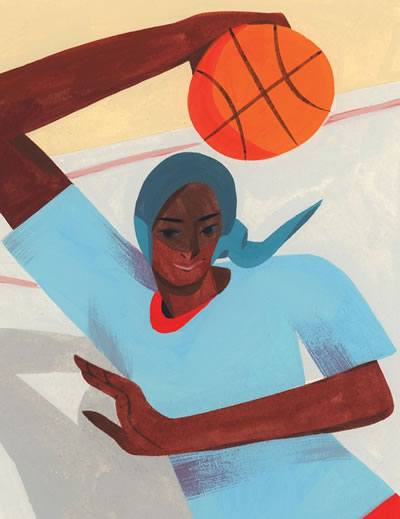 She considered herself devoted to Islam. She had memorized the Quran, and her uncle had a library of Islamic books, most of which she had read. “Praying and reading the Quran and going through these books gives me the feeling of being connected to God. It gives me the feeling that, on Judgment Day, I will not be judged because I missed my prayer or anything else, Inshallah,” she explained. But it didn’t make sense to her that God would care about girls playing basketball if they tried to be faithful and good.